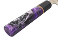 What makes this piece stand out is the custom epoxy handle in deep purple with subtle white and black accents. Each handle has its own unique flow and pattern, adding personality while maintaining a comfortable, secure grip. Modern look, practical feel.